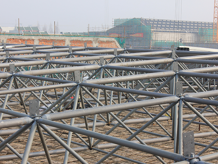 二、分為雙層的板型網架結構、單層和雙層的殼型網架結構。板型網架和雙層殼型網架的桿件分為上弦桿、下弦桿和腹桿,主要承受拉力和壓力;單層殼型網架的桿件,除承受拉力和壓力外,還承受彎矩及切力。目前中國的網架結構絕大部分采用板型網架結構。